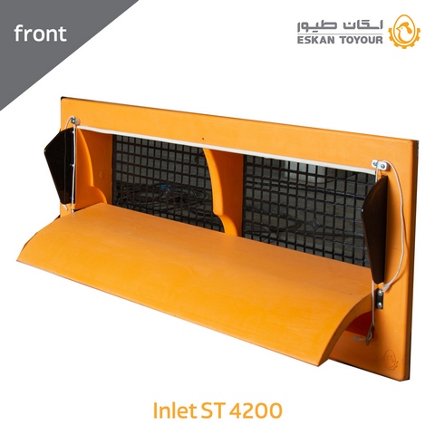 Inlets are used for uniform distribution of fresh air inside poultry houses. The amount of incoming air flow depends on the amount of air required for the bird and creating suitable environmental conditions. By using inlets, the air inside the hall can be preheated before the chicken enters. Poultry accommodation production inlets are designed and built with standard sizes suitable for broiler and laying hen rearing halls.