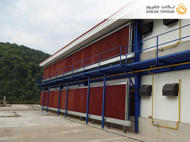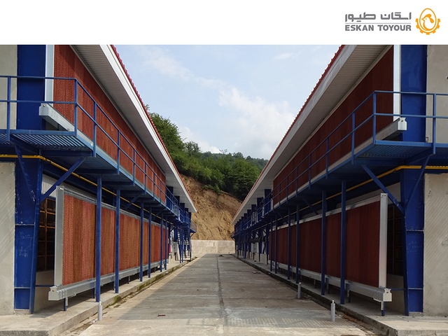In unfavorable weather conditions and causing stress caused by the increase in temperature outside the hall, the birds start to behave in a special way to cool themselves down. This action will reduce efficiency and also reduce feed consumption. With the experience of using evaporation systems with cellulose pads in different dimensions and also according to the conditions and needs of the hall, the Poultry Housing Company has been completely successful in minimizing the loss caused by the increase in the temperature of the hall. Poultry accommodation cooling system specifications