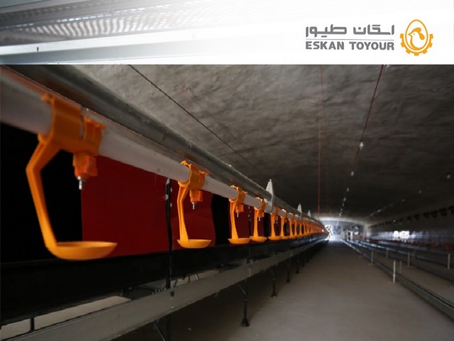 Due to the importance of water, which makes up about 70% of the bird's weight, and many drugs and potable vaccines that are distributed through water pipes in the hall, and due to the physiology of birds, which do not have a diaphragm muscle. The nipple drinking system provides the possibility for the bird to provide the water it needs by pecking at the nipple needle at the appropriate height. . The use of steel nipples with a plastic body, the strength of the nipple tube with a cup fastener and a specially designed support. The ability to adjust the water pressure using a pressure switch. Fountain at the beginning and end of the line to adjust the pressure